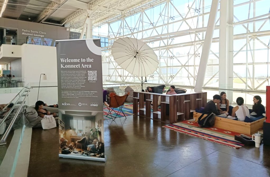 Brings identity and creativity to the KPMG Gallery with a special purple sofa as a feature and a focal point for informal meetings and discussions! This is also a welcoming, flexible space for students, staff, and visitors. Designed for collaboration, brainstorming, or relaxing and hosting talks, and events. The setup is fully movable, so feel free to rearrange the space to suit your needs.